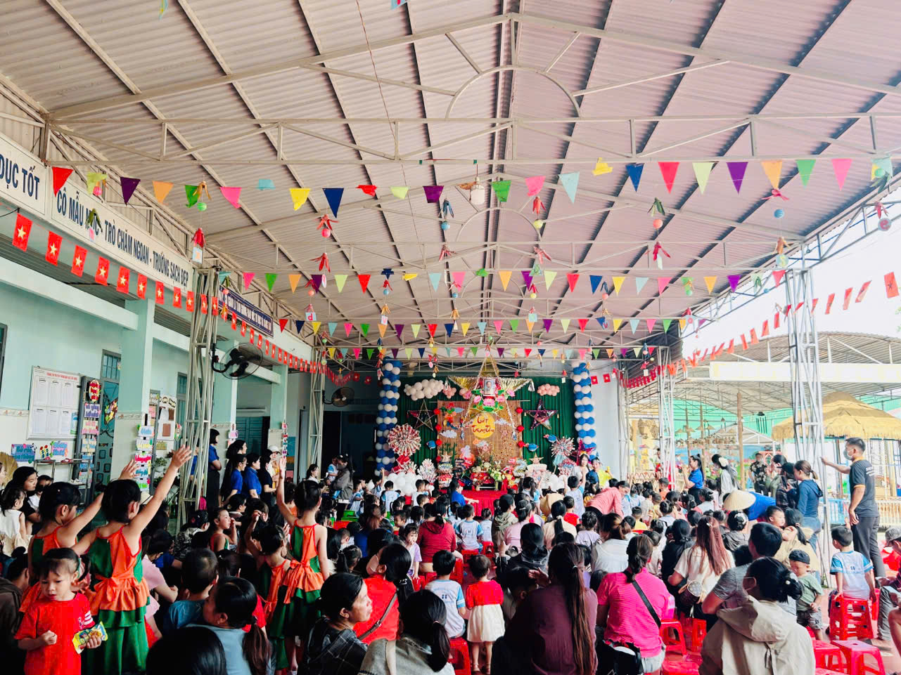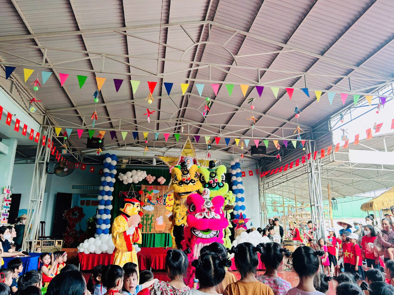 Ngay từ sáng sớm, sân trường đã trở nên rực rỡ sắc màu với đèn ông sao, lồng đèn giấy kiếng, bóng bay, cờ hoa và những gương mặt háo hức, rạng rỡ của các bé. Không khí Trung Thu thật sôi nổi, vui tươi và tràn ngập tiếng cười. 🌸🎉