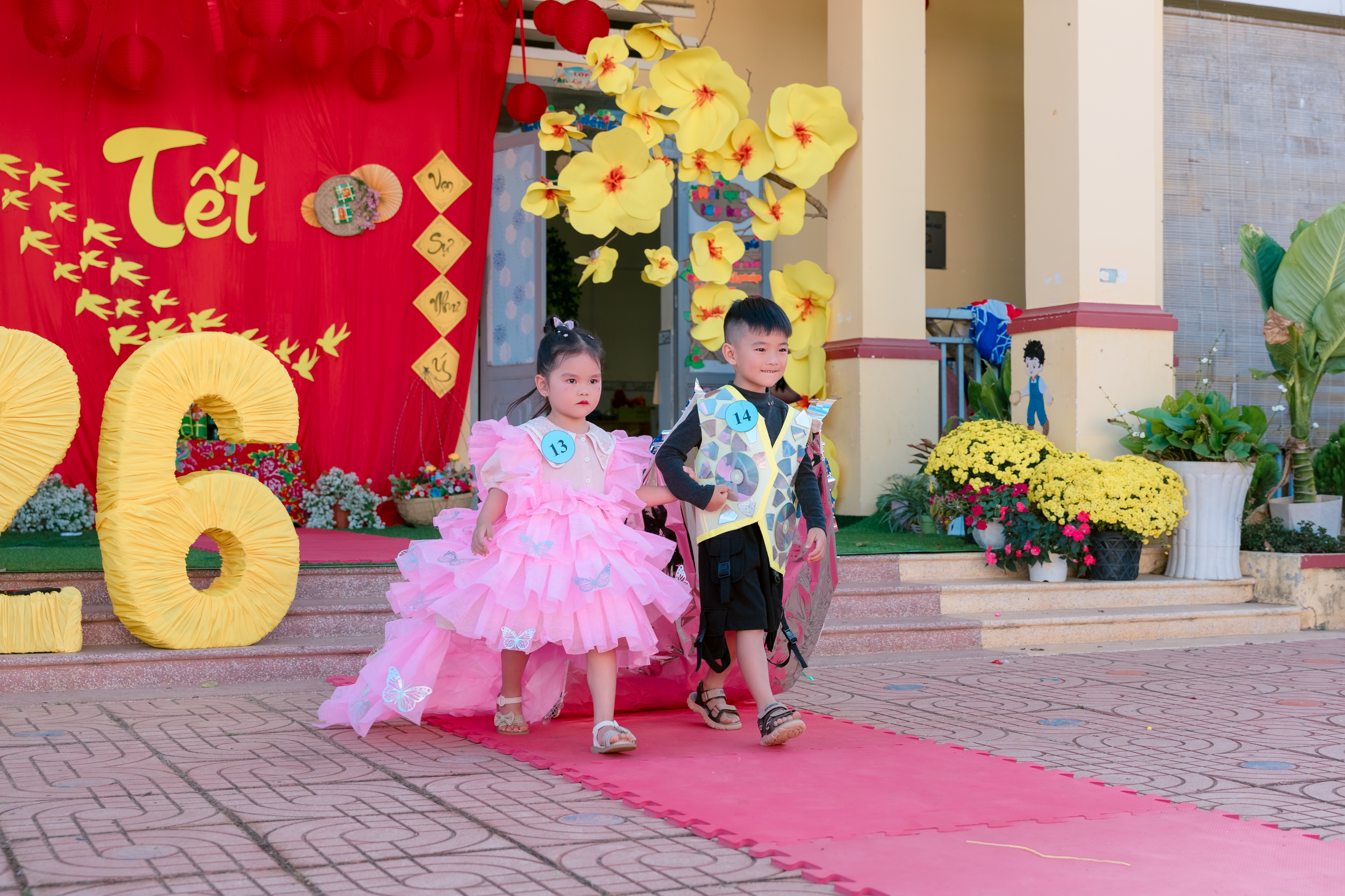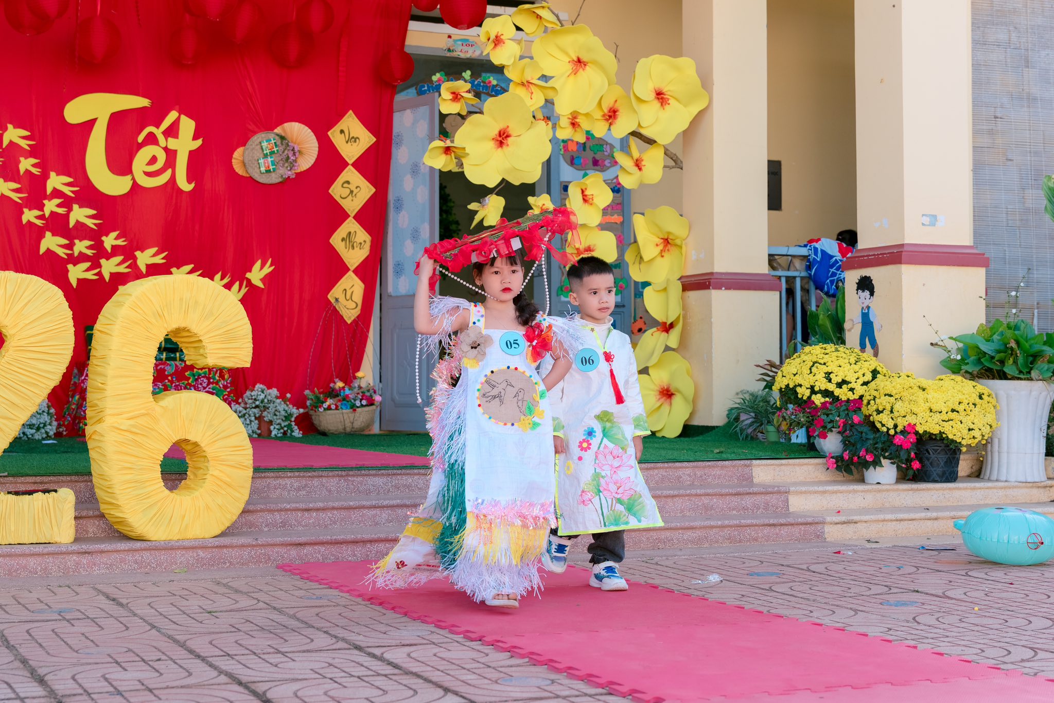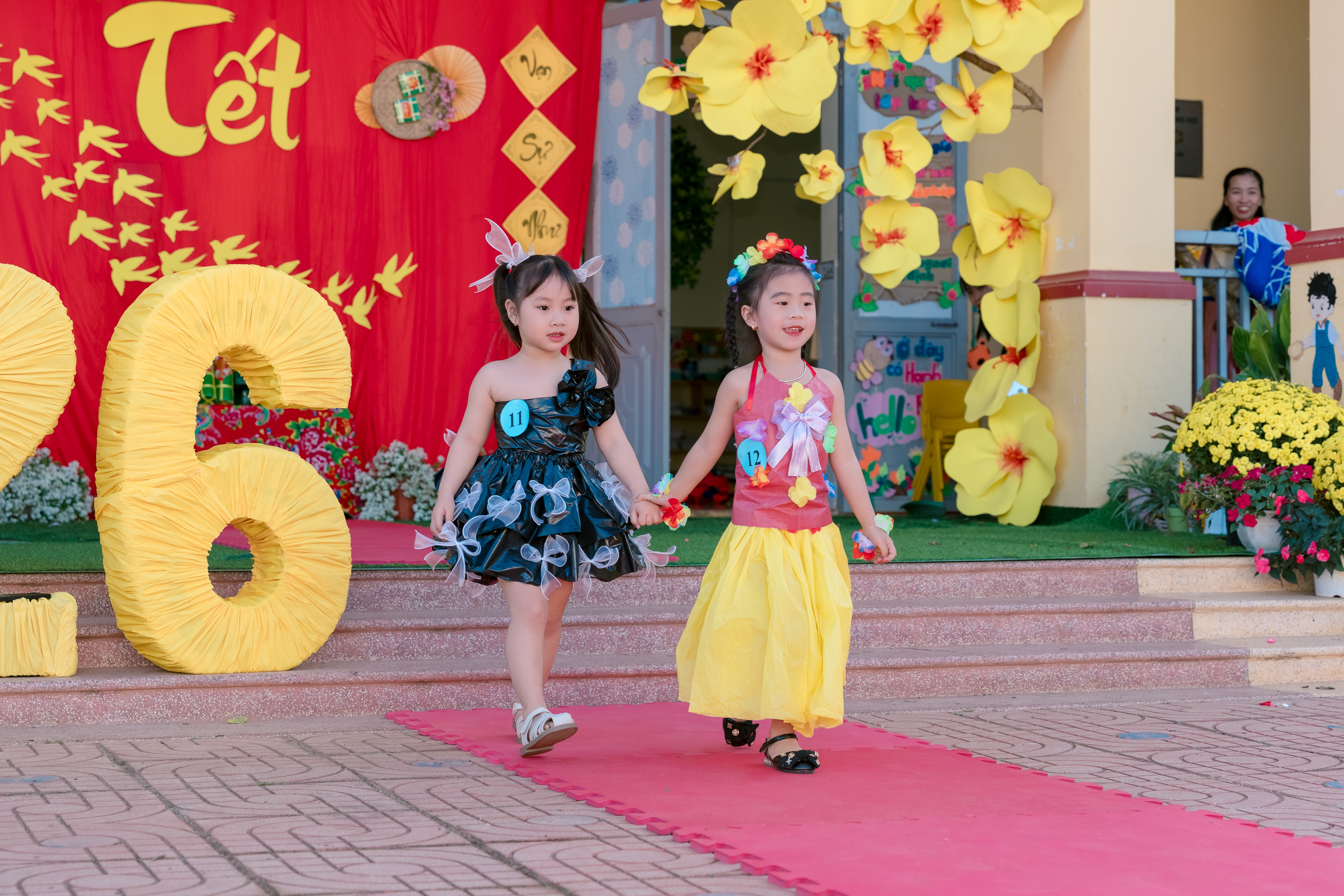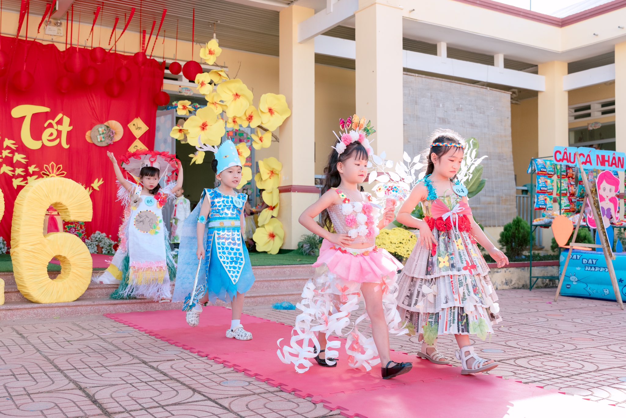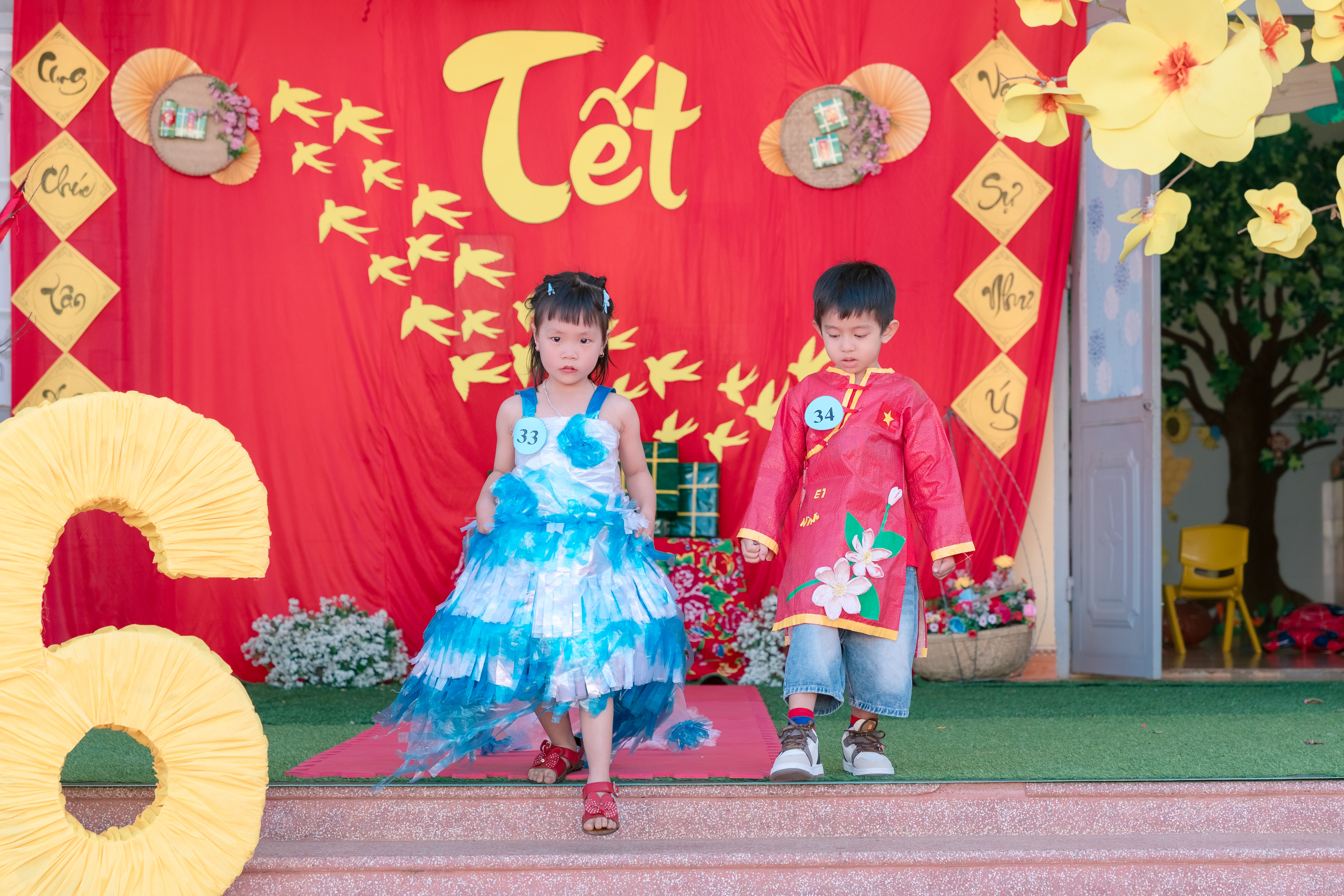 Điểm nhấn của chương trình là phần thi trình diễn thời trang tái chế với chủ đề “Nét xuân” do các bé tham gia. Những bộ trang phục được thiết kế từ vật liệu tái chế, vừa sáng tạo, đáng yêu, vừa góp phần giáo dục trẻ ý thức bảo vệ môi trường, tinh thần tiết kiệm và phát huy khả năng thẩm mỹ ngay từ lứa tuổi mầm non.