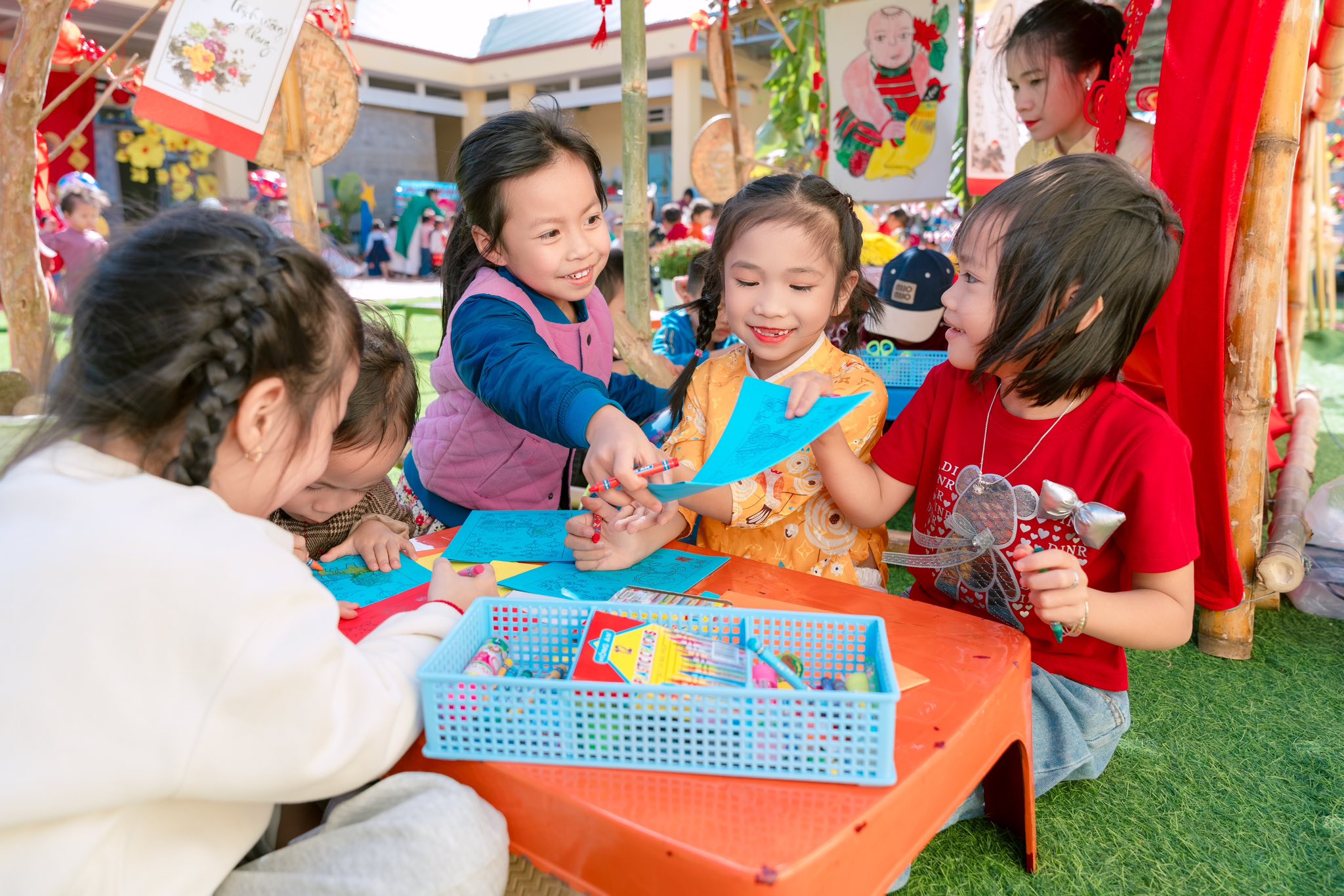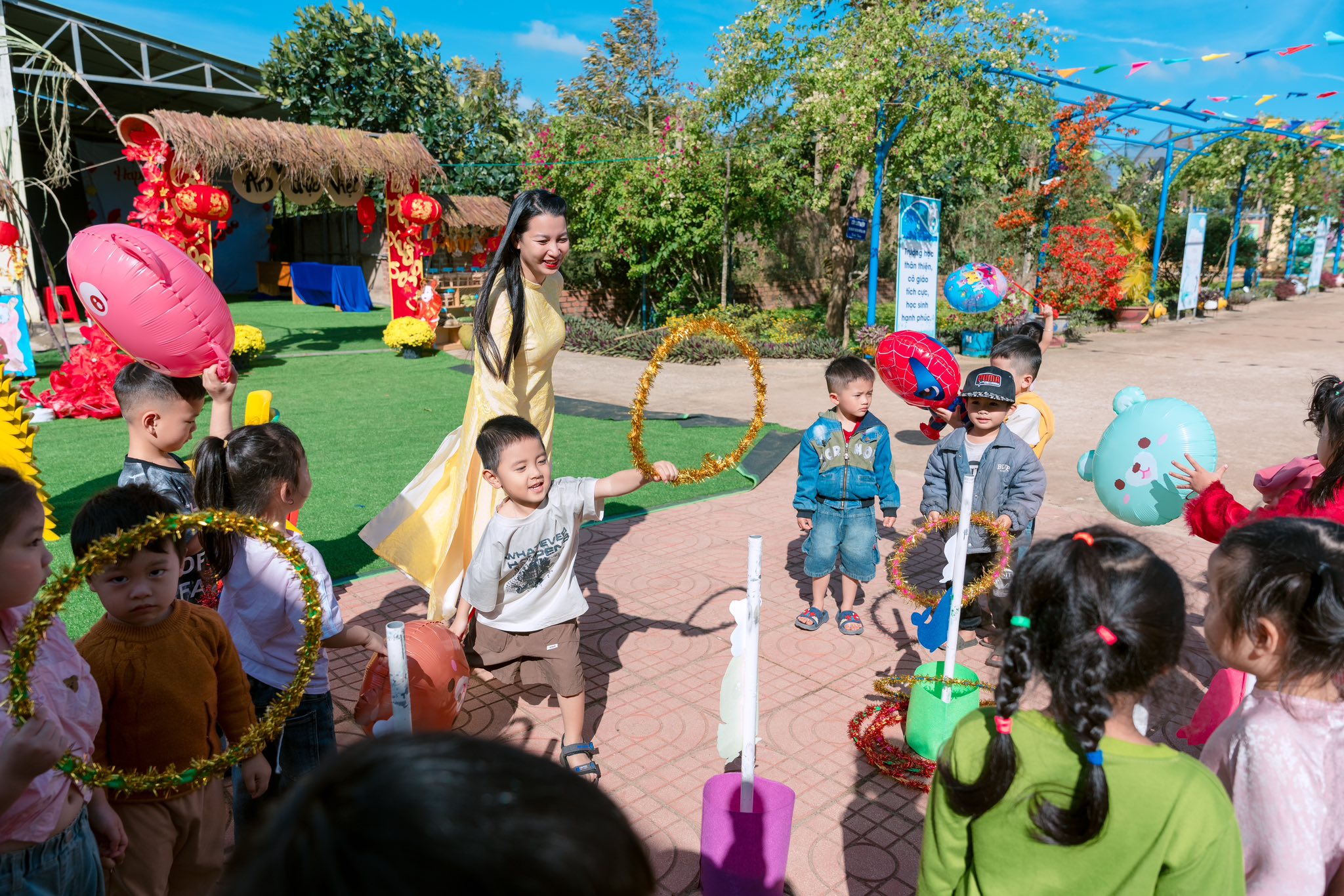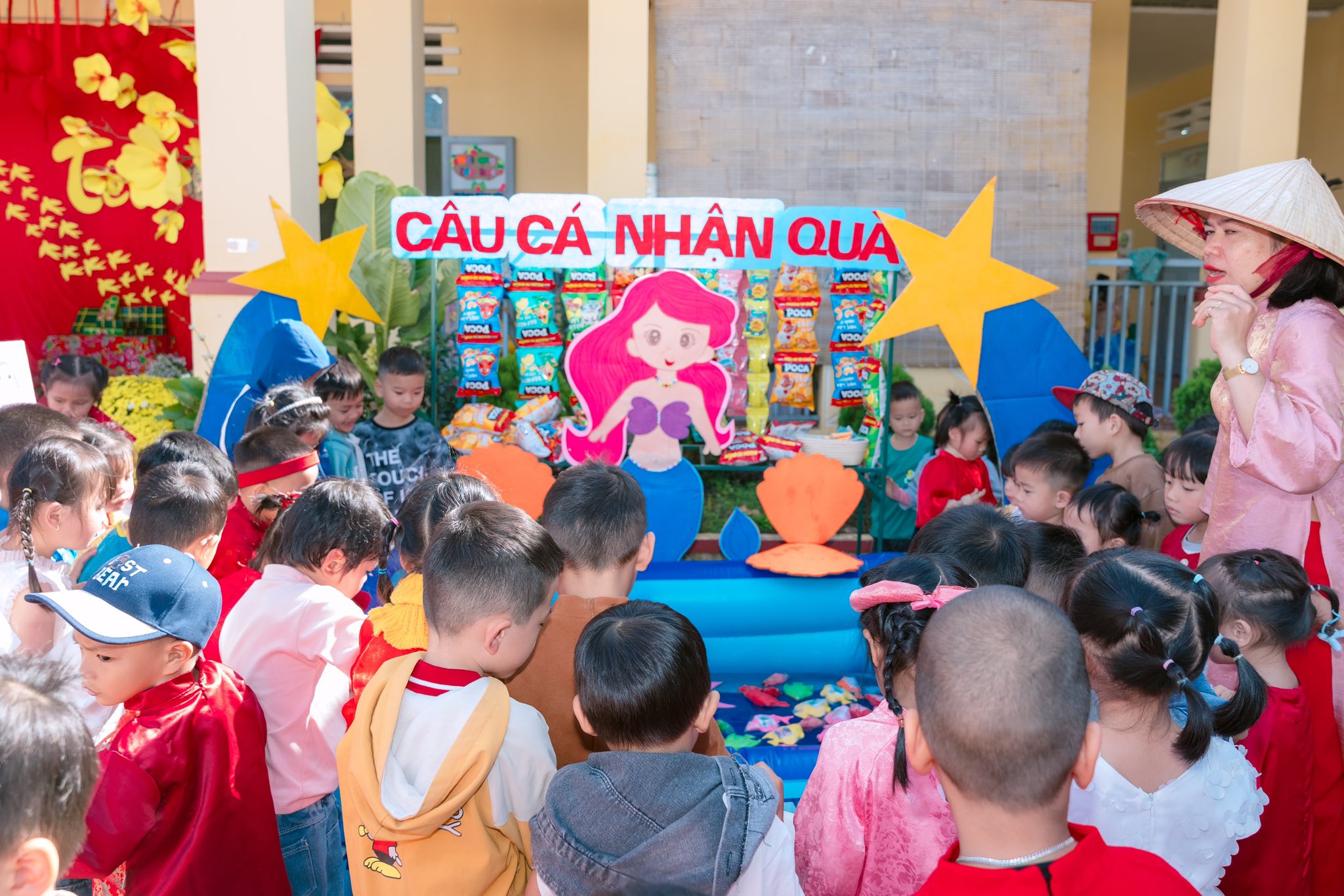Chương trình Hội xuân được tổ chức với nhiều hoạt động phong phú, ý nghĩa, mang đậm bản sắc văn hóa truyền thống. Tại Hội xuân, nhà trường đã bố trí các gian hàng thư pháp, gian hàng ẩm thực, gian hàng hoa xuân, cùng nhiều trò chơi trải nghiệm hấp dẫn, tạo không gian sinh hoạt văn hóa xuân gần gũi, ấm áp cho các bé và phụ huynh.